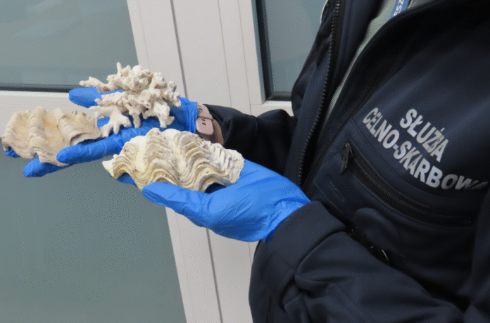 Funkcjonariusze Służby Celno-Skarbowej z Oddziału Celnego Port Lotniczy Rzeszów-Jasionka udaremnili nielegalny przewóz fragmentu rafy koralowej i muszli przydaczni. Nietypowe towary przewożone były do Polski z Egiptu.