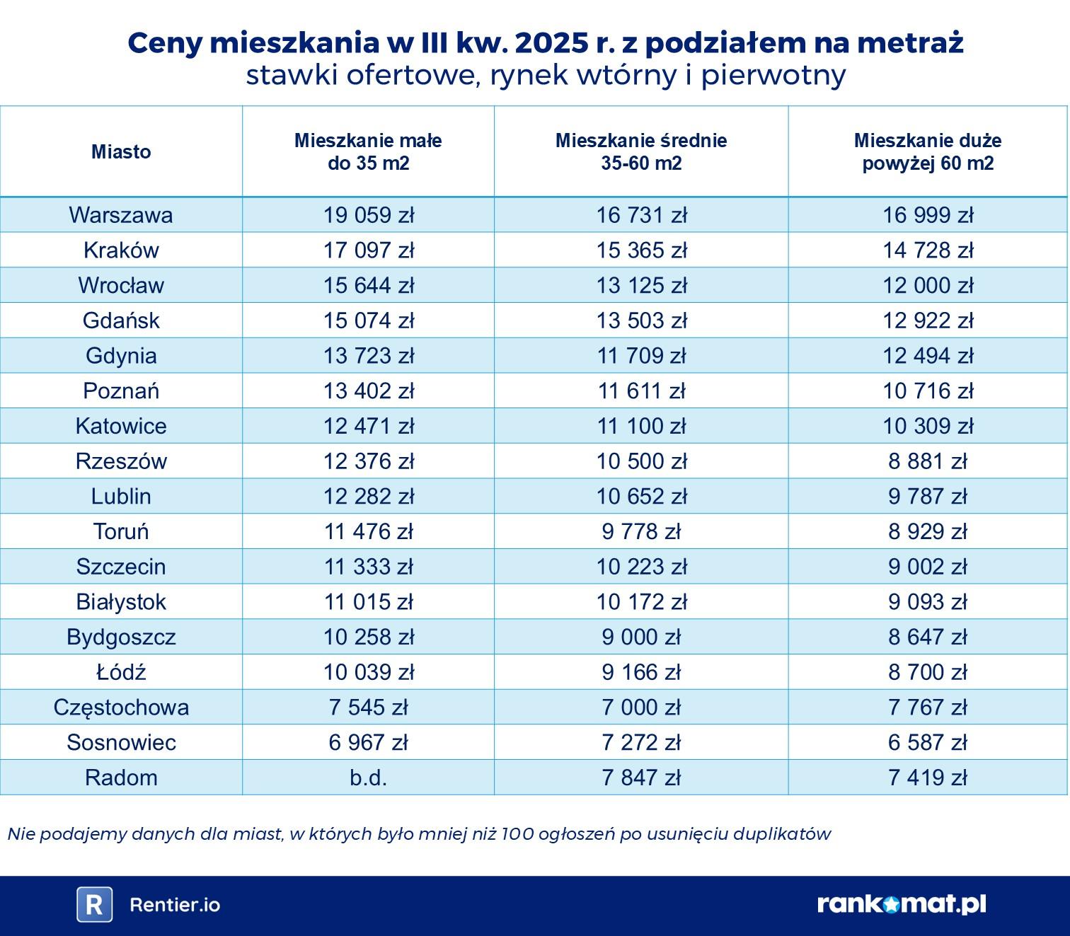W Częstochowie na zakup mieszkania o powierzchni 50 m² w III kw. 2025 r. wystarczyło 35 tys. zł wkładu własnego. W Rzeszowie jest to już 52 500 zł, a w Warszawie i Krakowie – kolejno 83 654 zł i 76 827 zł.