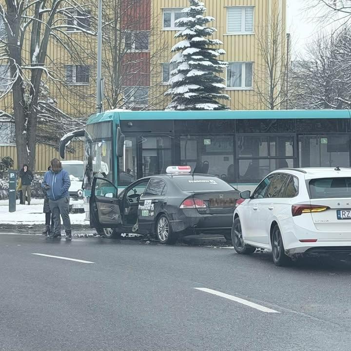 Do zdarzenia, które zatkało ruch w części Rzeszowa doszło przy ul. Marszałkowskiej, na wysokości Ronda Jana Pawła II. W kolizji uczestniczył autobus komunikacji miejskiej oraz samochód osobowy marki Honda Civic, pełniący funkcję taksówki popularnych sieci przewozowych.