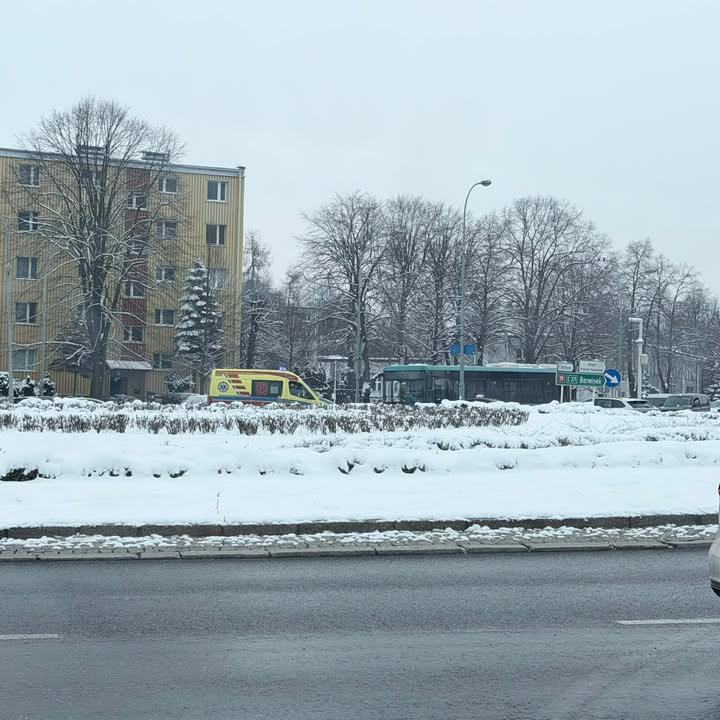 Na zdjęciach z miejsca zdarzenia widać znaczne uszkodzenia pojazdu osobowego oraz obecność zespołu ratownictwa medycznego. Służby ratunkowe zabezpieczają miejsce wypadku, co wymusiło wyłączenie z ruchu pasów wyjazdowych w stronę al. Witosa oraz centrum handlowego bi1.