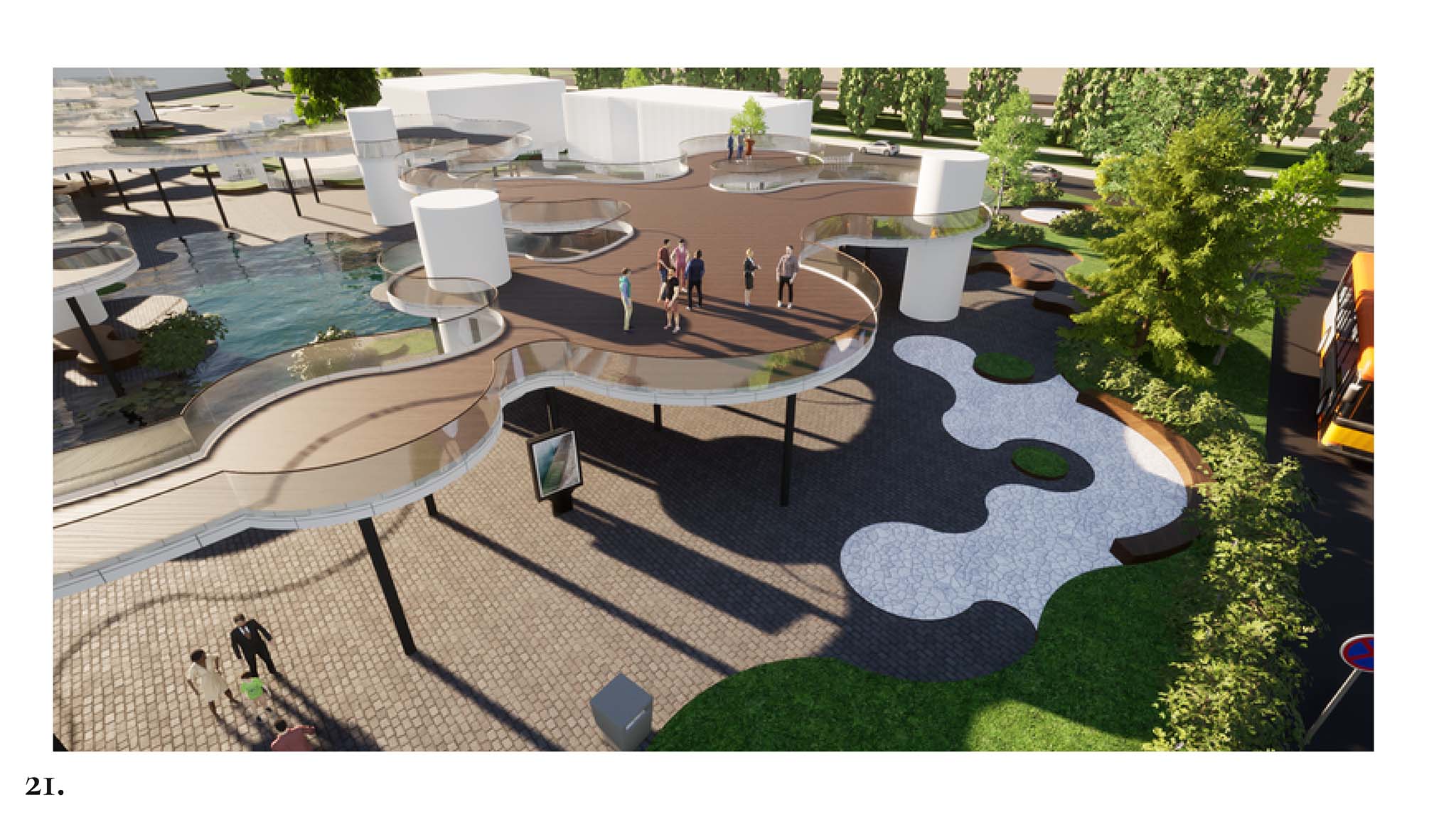 Grafiki: “Balcerek” wg studentek architekturyWiktoria Książek i Honorata Pitera zaprojektowały wówczas zmiany na „Balcerku”. Po modernizacji głównym elementem miałby zostać plac z sadzawką, zielenią i kładką, z której mieszkańcy mogliby podziwiać nową aranżację tego miejsca.
