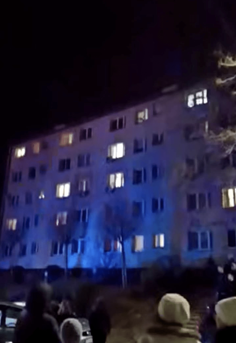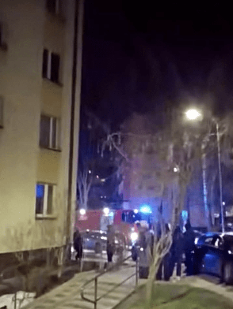 Nocne zdjęcia z miejsca zdarzenia dokumentują skalę niepokoju: przed budynkiem zgromadziła się grupa mieszkańców. Niebieskie sygnały licznych wozów bojowych straży potęgowały grozę.