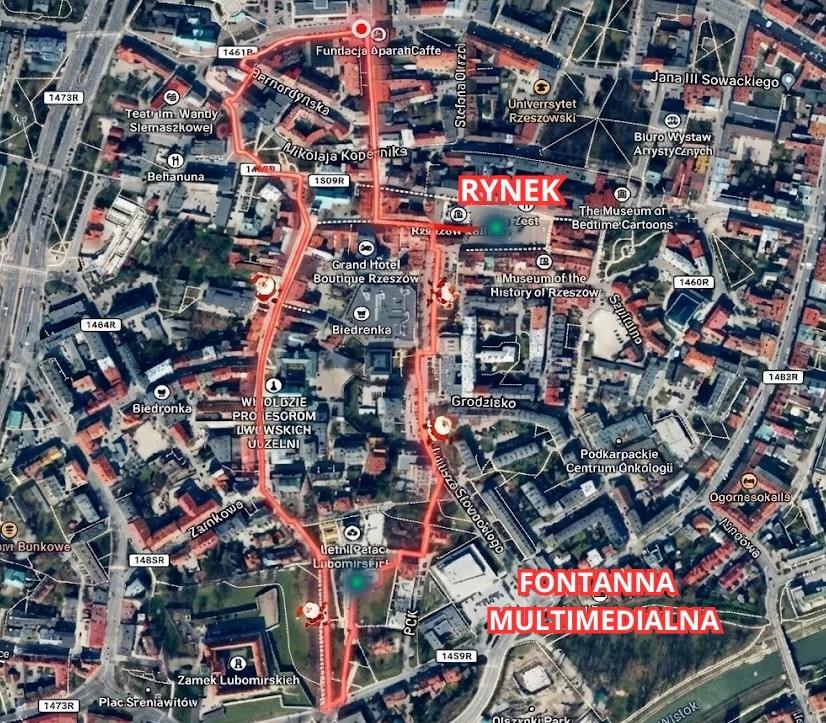 Biegacze wyruszą z płyty rzeszowskiego Rynku o godzinie 16:15. Trasa wyniesie łącznie 2,5 km, a przebiegać będzie ulicą Kopernika, dalej Bernardyńską, by udać się w otoczenie Zamku Lubomirskich, by następnie przebiec wzdłuż ulicy Słowackiego, kończąc pętlę na Rynku.