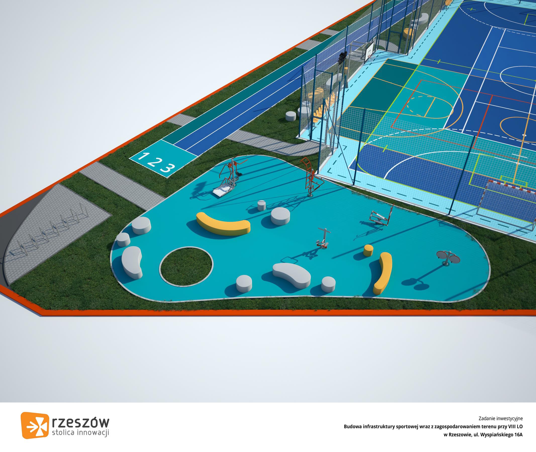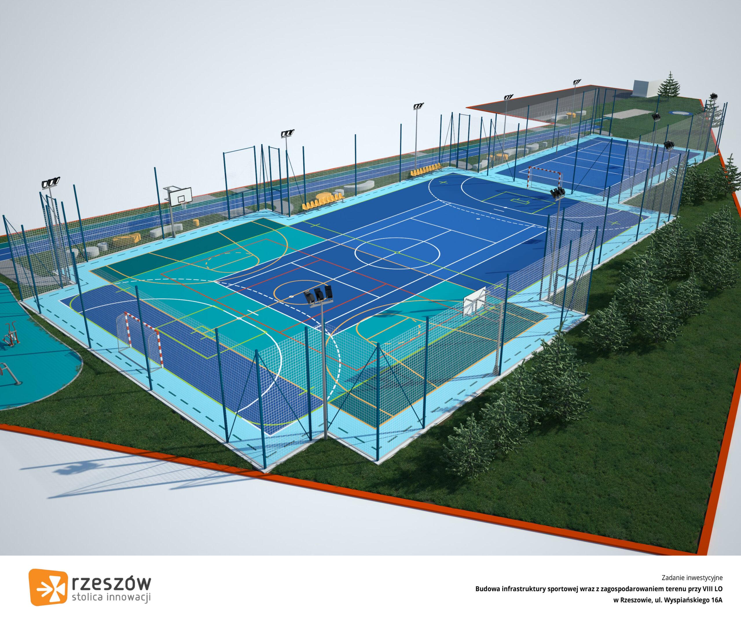 W ramach zadania powstanie wielofunkcyjne boisko ze sztuczną nawierzchnią o wymiarach 40 × 20 metrów, przystosowane do gry w piłkę nożną, ręczną oraz unihokeja. – Zaplanowano również budowę boisk do koszykówki, siatkówki i tenisa ziemnego, trzytorowej bieżni lekkoatletycznej, a także skoczni do skoku w dal i stanowiska do pchnięcia kulą. Z obiektów będą korzystać nie tylko uczniowie, ale również mieszkańcy okolicznych osiedli – informuje Urząd Miasta Rzeszowa.
