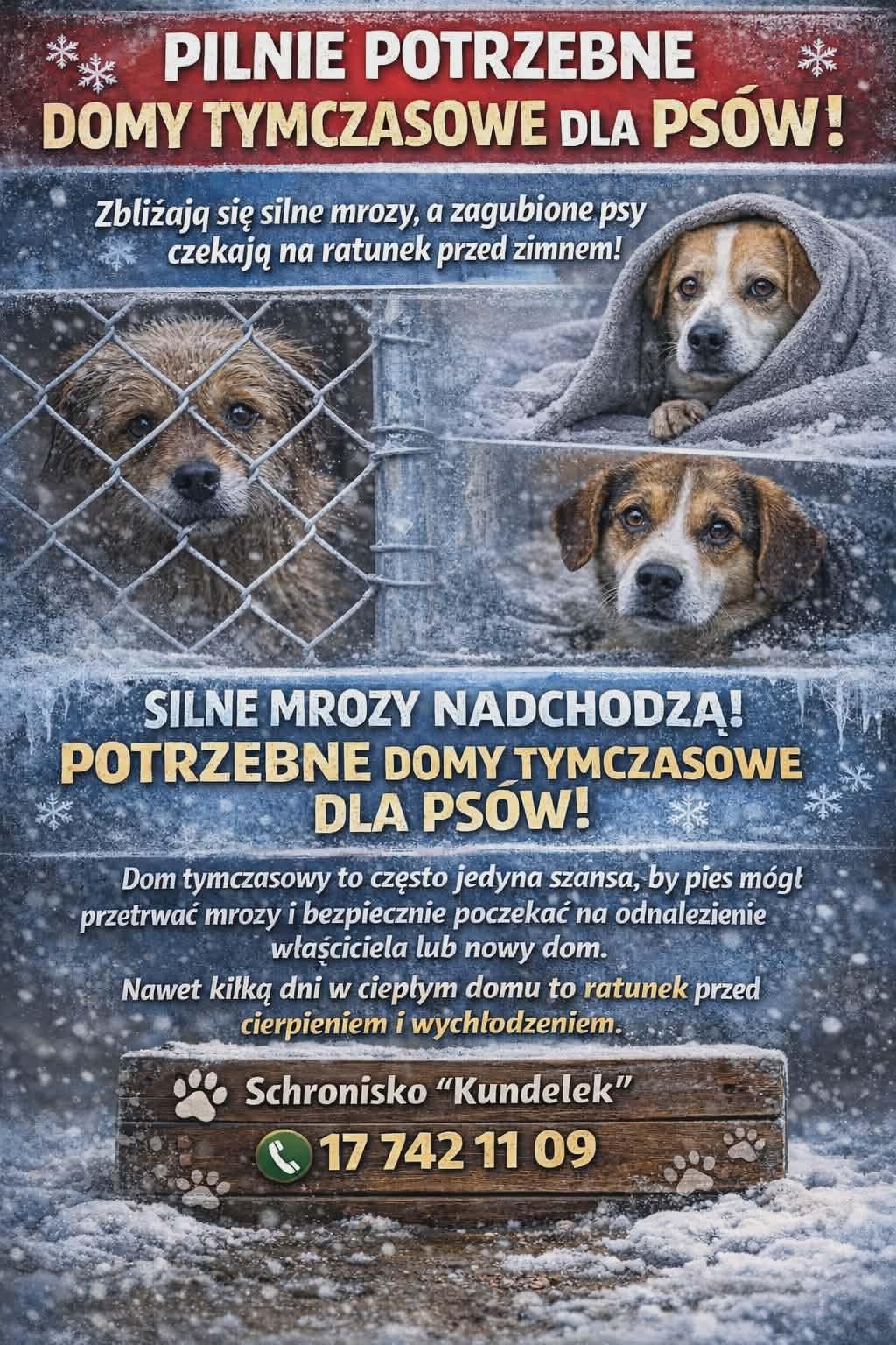 Fala silnych mrozów zmobilizowała pracowników rzeszowskiego schroniska “Kundelek” do wystosowania pilnego apelu o pomoc. Placówka prosi o domy tymczasowe dla najbardziej potrzebujących czworonogów. Odzew internautów był natychmiastowy i żywiołowy.