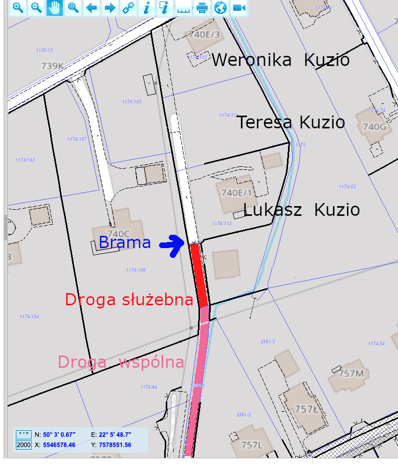 Sąsiad sędzia początkowo próbował przekonywać nas, że możemy dojeżdżać inną drogą – przez działki nieposiadające uregulowanego dojazdu – tłumaczy Kuzio. W tym czasie moja żona prowadziła przy domu salon fryzjerski, który stał się argumentem do zmiany dojazdu. Gdy nie zgodziliśmy się na takie rozwiązanie, w 2020 roku sąsiad rozpoczął systematyczne utrudnianie dojazdu, polegające m.in. na ustawianiu na drodze fizycznych przeszkód, np. kanistra z wodą.