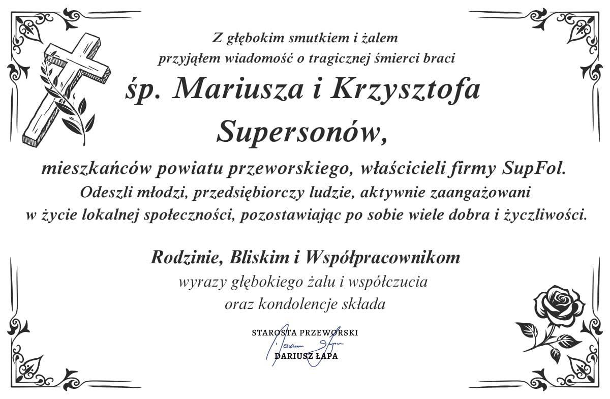 Do tragicznego zdarzenia doszło w sobotę, 29 listopada 2025 roku. Informację o tożsamości ofiar potwierdził w niedzielę Starosta Przeworski, Dariusz Łapa. Bracia Supersonowie byli postaciami znanymi w lokalnym środowisku biznesowym.