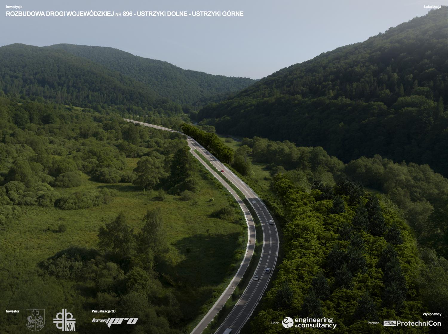 Główne cele rozbudowy DW 896 to poprawa bezpieczeństwa wszystkich uczestników ruchu, zabezpieczenie terenów zagrożonych ruchami masowymi ziemi, utrzymanie ciągłości komunikacyjnej oraz poprawa płynności ruchu w jednym z najtrudniejszych terenów drogowych w województwie.