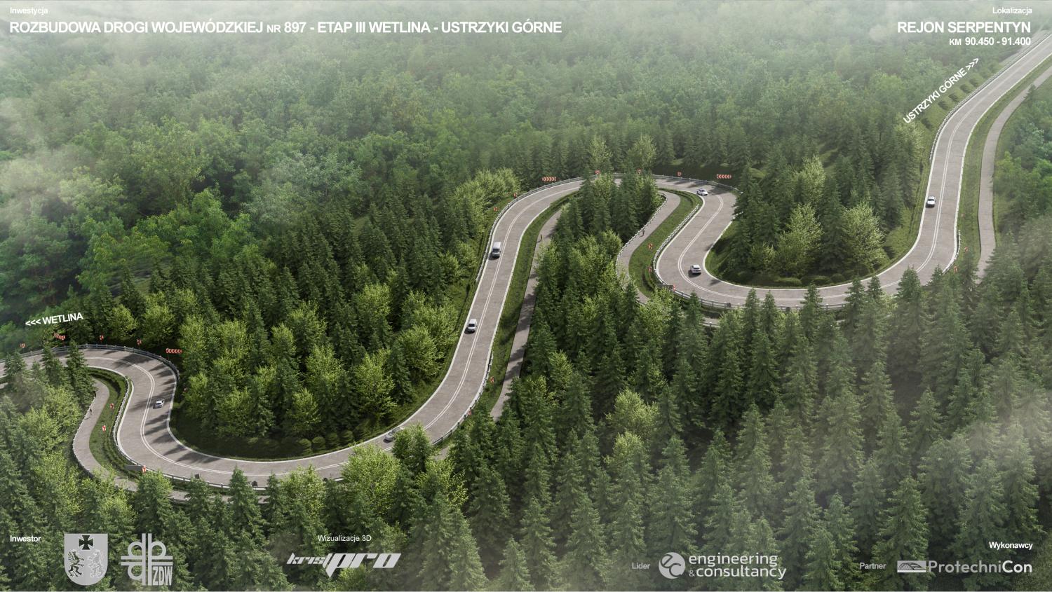 Wizualizacja DW 897 Wetlina – Ustrzyki Górne (fot. materiały prasowe PZDW)